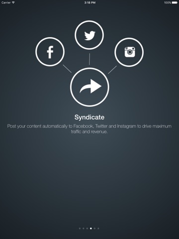 Syndicator is a management tool for Syndicator creators. It allows content creators to post/manage content, view revenue and metrics. Only invited and approved creators can log in to the app.