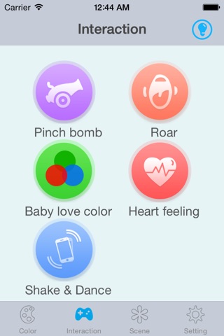 Funny games with friend, such as dance, play games, roar for competition, teach baby colors, shake, heart beat detect(our bulb will beat with your heart)!
