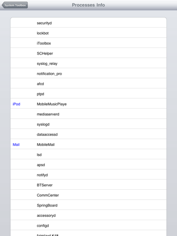 - Displays all running processes on the device, including actual process name, and user-friendly short name.