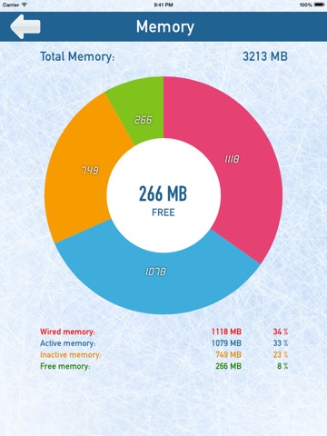 • Visual display of real-time memory usage: Wired, Active, Inactive and Free memory
