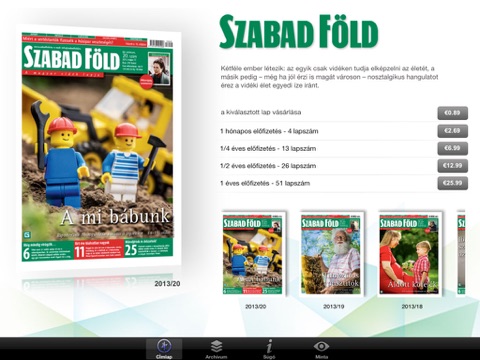 1/2 éves előfizetés, 26 lapszám € 12.99