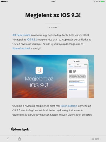 Nem rossz, sokkal jobb, mint az eddigi Safari-s megoldas, viszont meg van hova fejlodnie. Legidegesitobb, hogy a cikkekben a linkek helyen nincs semmi, igy olvashatatlan a szoveg. Kaphatna ertesiteseket is, de amugy jo lett.