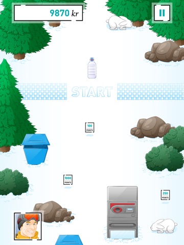 Along your way collect points and recycle bottles, but don´t hit any trees, rocks, rabbits or blue trash cans as you race down the slope.