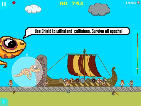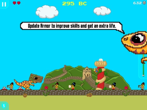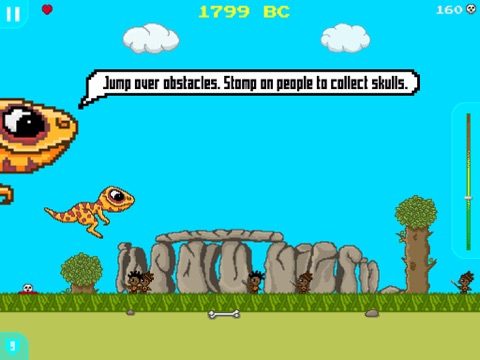 Join T-Rex in his adventure through time and space. Jump over obstacles to go on. Collect Skulls to use Time machine. Update Armor to improve skills and get an extra life. Use Shield to withstand collisions. Survive all epochs from Stone Age to Future. Find out what T-Rex hates the most!