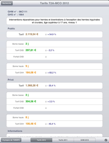 Pay attention if you want to compare with price from others nations or insurance companies. In France, like everywhere, there are numerous specificities. For example, fee of independant practitioners are not included in private price, and numerous subsidies are not in public price… French DRG are based on ICD10…
