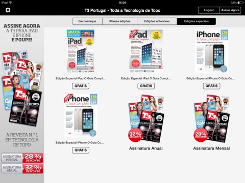 A T3 é uma revista mensal, com a possibilidade de efetuar uma assinatura mensal ou anual. Ao efetuar a subscrição, usufrui de um desconto substancial em relação ao preço de cada edição individual. As assinaturas são automaticamente renovadas. Caso deseje cancelar a sua assinatura, deverá aceder à sua conta e desligar a opção “Renovação Automática”, pelo menos 24 horas antes do prazo final da assinatura.