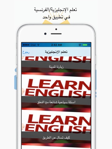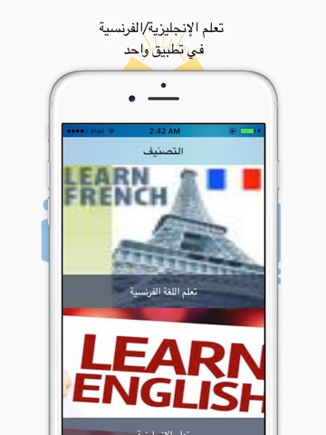 هذا التطبيق يساعد الناس الذين يودون تعلم المفردات و المحادثات الإنجزلية و الفرنسية.