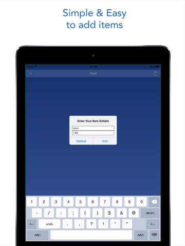 Tab It Up lets you quickly and simply enter items and amounts to automatically provide a running total.