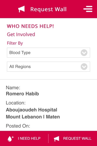 • Seek donors efficiently: The “I Need Help” feature helps you search for, and locate, potential blood donors. (Search donors by Region and Blood type.)