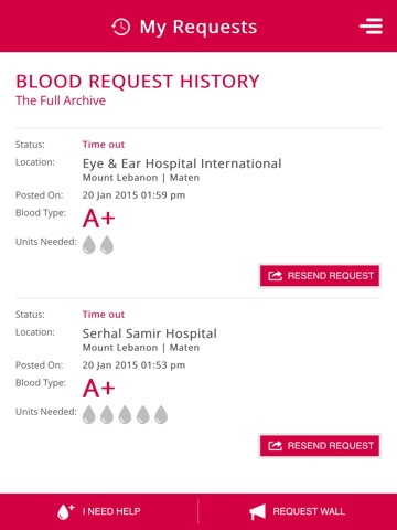 • Browse requests dynamically: A live Activity Wall shows requests from across Lebanon, to help you make the most effective donation. (Search requests by Region and Blood type.)