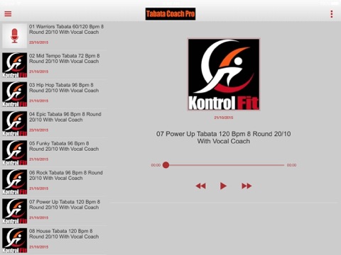 KontrolFit presents the first and only App to offer Tabata training with specially created music, timer and vocal coach.