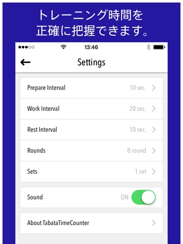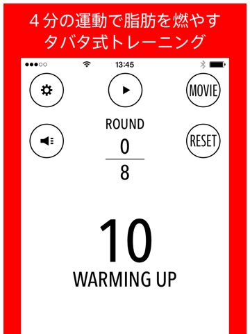このアプリで(20秒運動+10秒休む)× 8回 = 4分 という時間を正確に把握することができます。