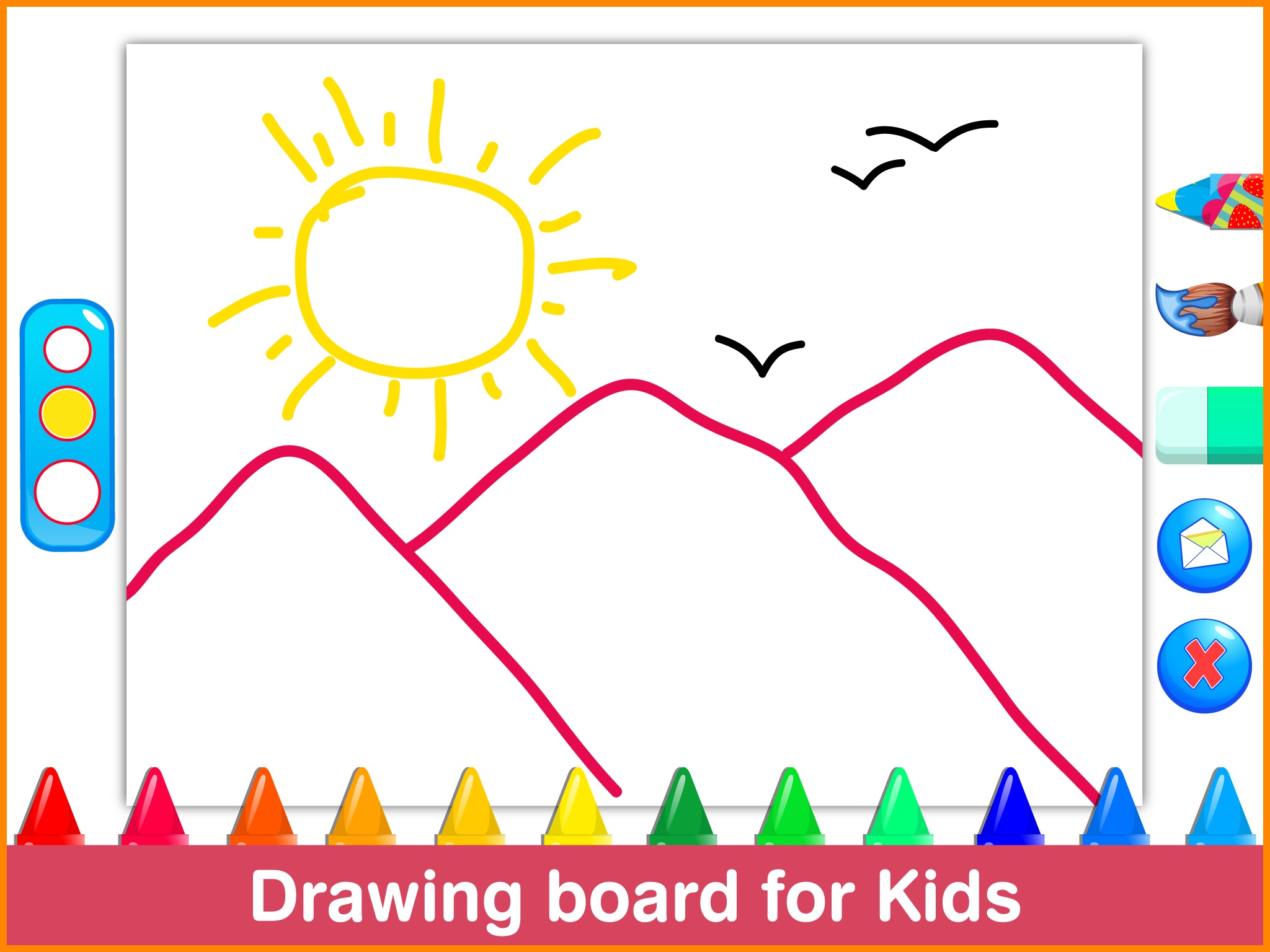 - 35 beautiful colors, 10 patterns, eraser & 3 brush sizes