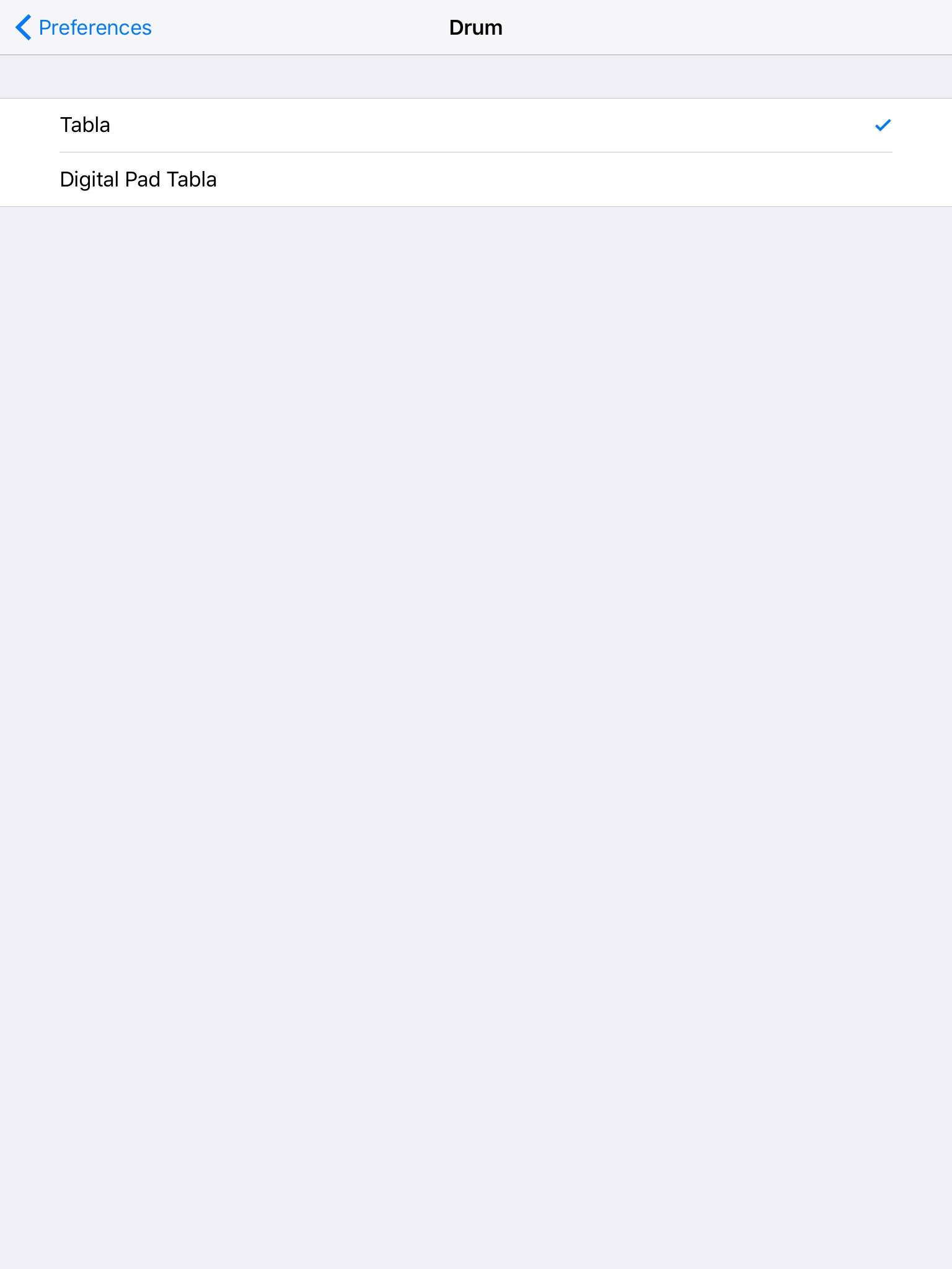 You can switch from the Tabla Drum to the Digital Pad Tabla using the preferences to have access to all beats at the same time.