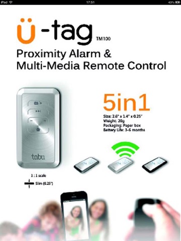 - Proximity Alarm/ Keyfinder (When the smart device is apart from the remote, a sound will alerted you on both U-TAG and the Smart device.)