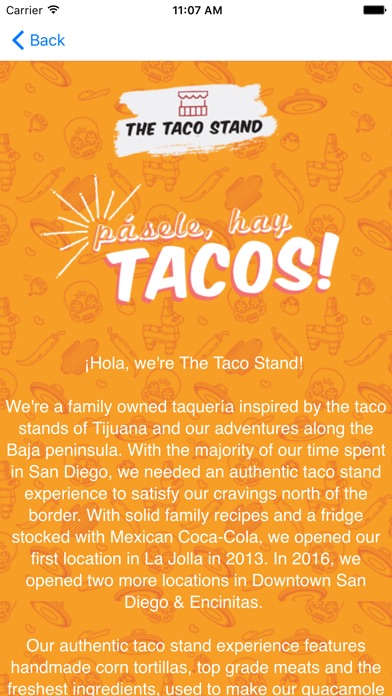 Our authentic taco stand experience features handmade corn tortillas, top grade meats and the freshest ingredients, used to make our guacamole and salsas from scratch daily. Besides amazing tacos and burritos, we also have a great selection of Mexican flavored popsicles, refreshments, imported beer and freshly prepared Rosarito-style churros.