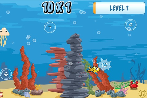 Tafels oefenen kun je overal doen, zelf onderwater en dat ga je in dit mooie spel meemaken. Als het spel begint heb je een heel klein visje en met deze vis moet je de bubbels opeten waarin het goede antwoord van de rekensom staat. Je krijgt 20 vragen per level en je hebt 3 levens. Als je al deze vragen goed hebt dan zit je helemaal vol met sommen dus wordt het tijd voor een grotere vis, en die krijg je ook. Probeer alle vissen te halen en aan het eind van het spel staat je een gevaarlijke verrassing te wachten.