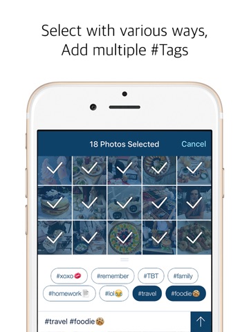 Instantly find a certain photos by filtering search results by using #tags. No more scrolling in your gallery.