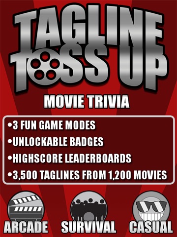 Tagline Toss Up is a movie trivia game that challenges you to guess the correct movie from its movie tagline.