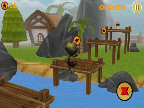 Tagoo a cute turtle... have to run as fast as he can as he needs to be in friends house at time... collecting coins & passing through different obstacles...