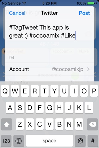 This app will add the multiple Hashtags automatically in the inputted text when you posting to the twitter etc.