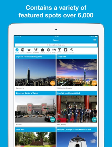 Pilot contains a variety of content. You can freely choose from over 7,000 destinations including restaurants, tourist attractions, shopping malls, and bars. It includes pictures, comments, prices, and business hours for spots that are particularly popular among tourists. You can thoroughly enjoy your trip.