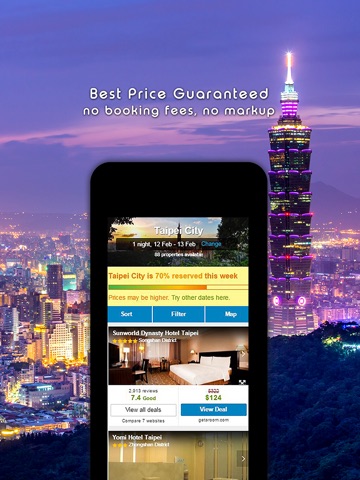 Taiwan Hotel Search, Compare Deals & Book With Discount help you to find and compare the best hotel deals from all major travel websites with one quick and easy search. No matter where in the world you are looking, how much is your budget, even at the very last minute, this app will find you the cheapest one to fit your budget and get you the best value for your money.