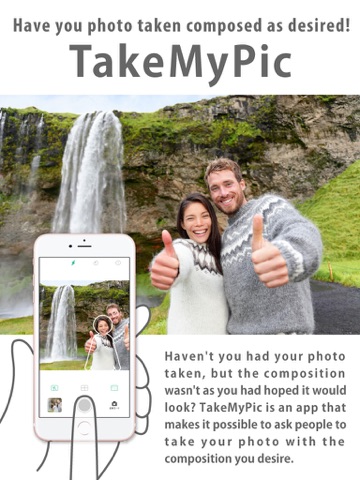 TakeMyPic is a camera app that makes it possible to have your commemorative photo taken with the composition you desire.