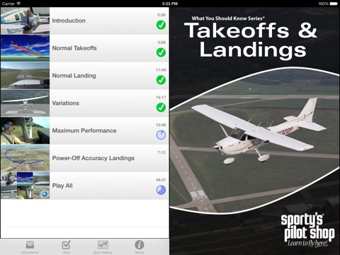 This app will help you maintain your takeoff and landing proficiency—great for students, instructors, and experienced pilots alike. With the intuitive menu, you’ll be able to quickly access the topics you want to watch.
