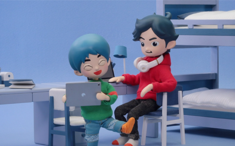 "Takeshi and Hiroshi" combines the two worlds of puppet animation and Role Playing Game. It tells the story of two brothers and their daily life. The 14-year-old Takeshi, a game designer to-be, is creating a game for his weak little brother Hiroshi who always wants to play the next chapter of the game as soon as possible. As the game is still in the making, Takeshi has to improvise and secretly plays some of the monster roles himself. It is Takeshis goal to make Hiroshi really enjoy his game, let him meet big challenges, but preferably to prevent him from losing. He has to choose which monsters shall appear when and struggles more and more as the challenge for him as a game creator becomes increasingly difficult.