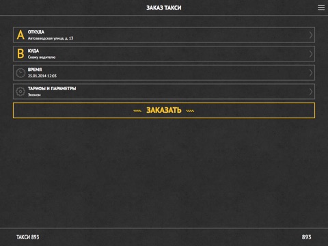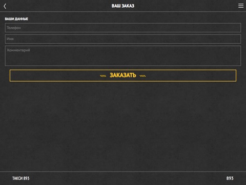 - быстрый заказ такси по двум полям "Откуда" забрать и Номеру телефона