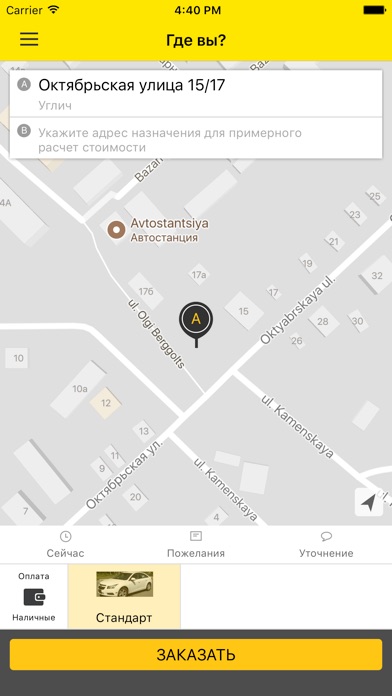 - Заказ авто без звонка диспетчеру. Отметьте точку на карте, не нужно писать длинный адрес вручную;