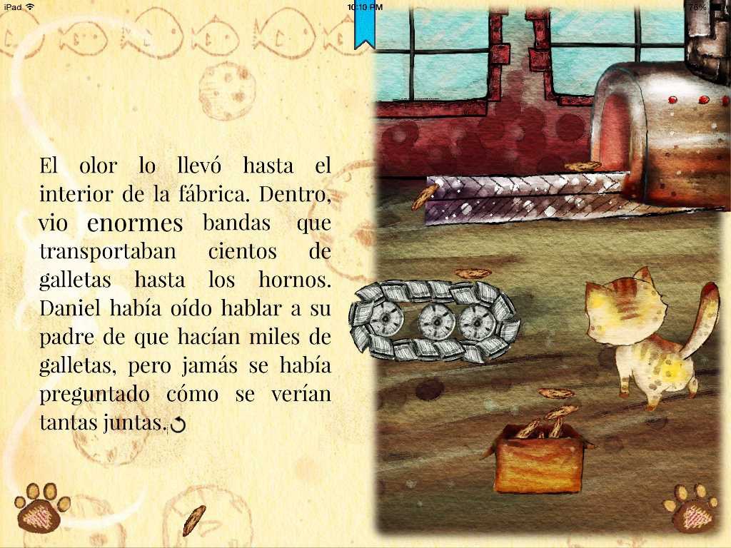 Daniel Cookiecat is a little curious kitten that went on an adventure inside a cookie factory. 30 fully interactive pages with narration in English and Spanish, amazingly illustrated and with great classical music, the best experience in narrated interactive tales.