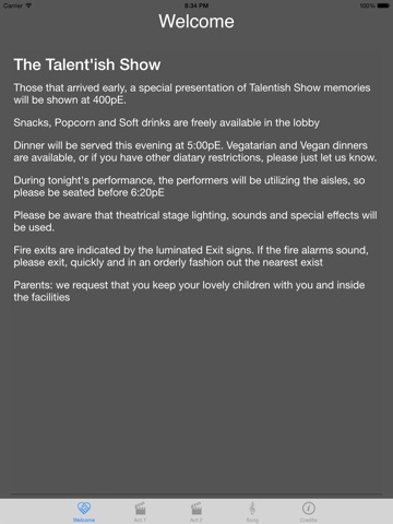 Starting in 2015, The Talentish Show is proud to present the Talentsh Show Program via the iOS app. Help us support an eco friendly alternative to the paper programs of the past.
