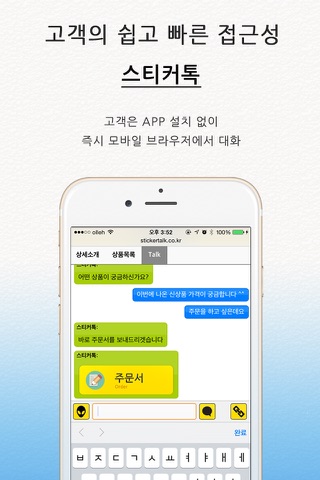 스티커 톡을 통해 "고객/이용자" 는 APP을 설치할 필요가없습니다.