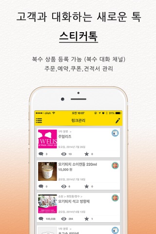 "스티커톡"에 상품하나하나 또는 "대표 문의" 링크를 등록하고 난뒤