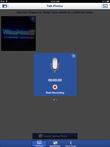 You can take or choose multiple photos. All of the photos you take or select will go into the Talk Photos section. You can arrange the photos in the order you want them to appear. Use two fingers and "drag" photos into the order you choose. The time of your recording is divided evenly with the amount of photos you select. Our next update will have more features with recording on each photo.