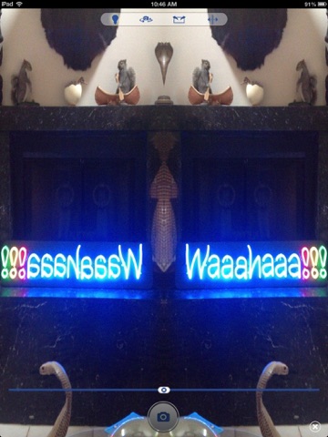 Talk Photo is also a Reverse Mirror. You can Flip either the front or rear facing cameras. So when using the Front Facing camera you will be able to see your True Non-Reversed Image, instead of a Reflection, which is backwards. You can also Flip the Rear Camera view so if you take a photo of yourself in front of the mirror, you will be able to see yourself Non-Reversed as well. Simple solution!!