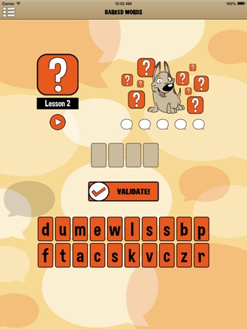 When you have a good command of barked, test your knowledge with the game of barked words. Twenty-one lessons in which you will have to understand the barking of dogs to form the respective sentences in your language. Drag the letters in the correct position.