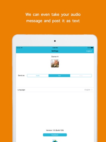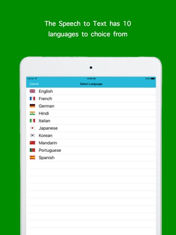 * Using Speech to Text, post a text message simply by speaking. The supported languages include;