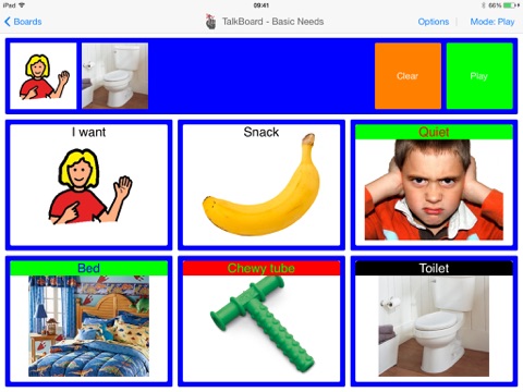 TalkBoard turns your iPad, iPhone and iPod Touch into a communication aid and visual prompt board. TalkBoard is affordable because it does not come with built-in pictures or symbols, which many other apps charge extra for. You can easily use your own pictures and symbols to personalise the app to you, your children and your clients, without paying extra for symbols which you may never use! The boards shown in the screenshots below are purely for demonstration purposes, and are not included with the app.