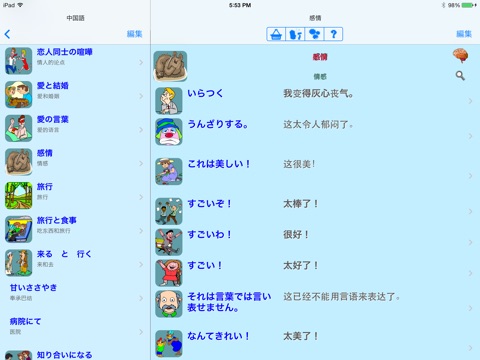 • More than 45 categories, including 6 travel sections, falling in and out of love, arguing, small talk and many others.