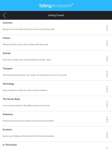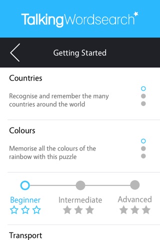 Track your progress as you try to beat your best times and obtain all the stars in this fun and exciting reinvention of the classic word search. Perfect for language learners and word puzzle lovers alike!