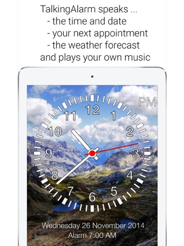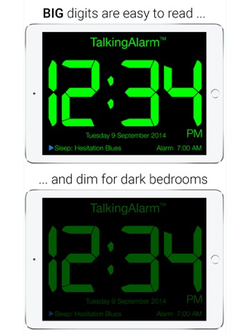 - Cant see your clock at night? Tap the screen and TalkingAlarm speaks the time.