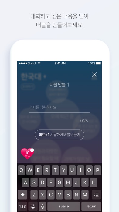 1. 지금 이 순간의 기분, 관심사, 고민을 버블 형태의 키워드로 띄워놓고 기다리면 상대로부터 전화가 걸려오는 심쿵주의 통화