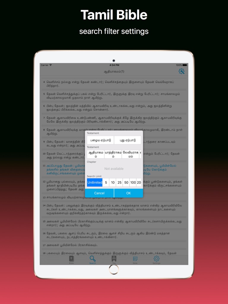 This app contains both "Old Testament" and "New Testament" in Tamil.
