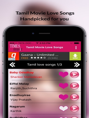 Get the free Tamil Love Songs a music App tailor-made for Kollywood Music fans who are ardent fans of Love songs. This app helps you listen to the best love songs from old and new Tamil movies.