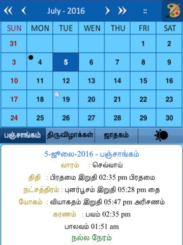 Tamil Calendar Panchangam is an informative app for people of Chennai and Tamil speaking people across the world.Wherever you go! This application is a great tool to help you get the most out of your day, and plan your days for success.