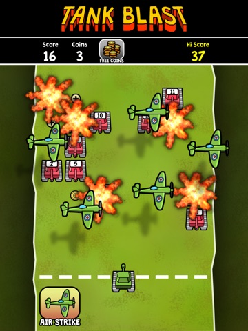 Collect coins and use them to buy Air Strikes against the enemy tanks.