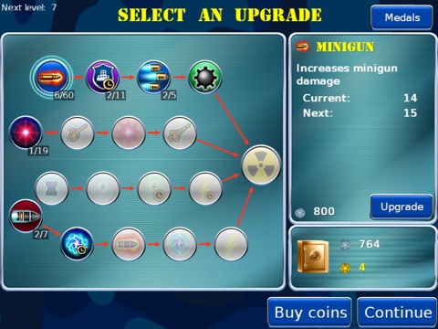 You can spend the coins between missions to upgrade weapons and protection of the base, and to improve special weapons as well!